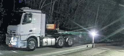 A white Mercedes Actros prime mover with two long green trailers was caught on CCTV arriving at a weighbridge at 4:20am.