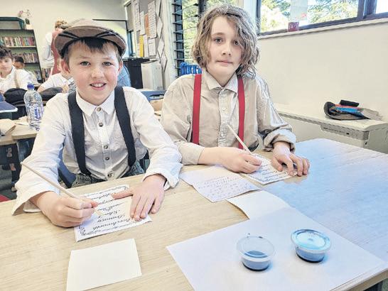and Ralph Bird tried their hand with an old-fashioned writing skill when Beechworth Primary School stepped back in time on Wednesday.