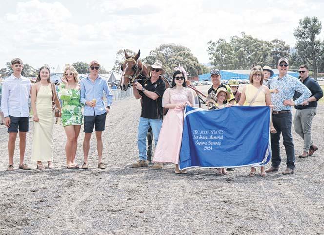 The Greenhalgh family congratulate winning driver Emma Turnbull and Huta on winning the AGnVET Services John Greenhalgh Memorial.