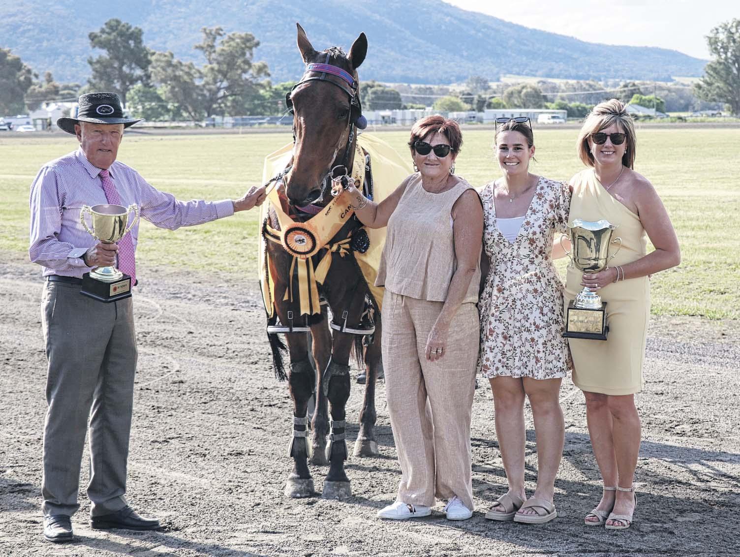 Rob Smith from Kriden Park, Jenny Turnbull, Jemma Howell and Jodie Greenhalgh with Canola Cup winner Chart Topper, driven by Amanda Turnbull.