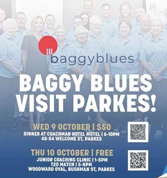 The NSW Baggy Blues, The Rural Adversity Mental Health Program (RAMHP) and Parkes Cricket Association have teamed up to promote mental health and wellbeing by bringing people together through the sport of Cricket. There is a jam-packed 2 days of exciting activities. There will be a dinner at the Coachman Hotel (6pm -10pm) - $50 per head and a free school holiday cricket clinic from 1pm to 5pm at Woodward Oval hosted by Cricket NSW. To register for the events head to Parkes and District Cricket Association on facebook.