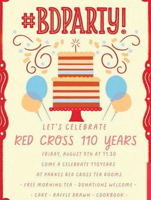 Come along and celebrate 110 years of Parkes Red Cross at the Red Cross Tea Rooms for a free morning tea, cake cutting and raffle draw from 11:30am. Donations Welcome, cookbooks are available for $15 each