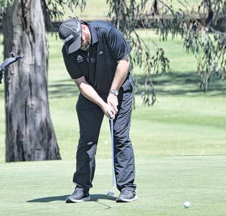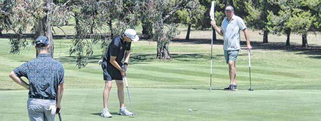 Colin Mitchell putts, watched by Jye Halls and Steve Betland. PHOTO: Jenny Kingham