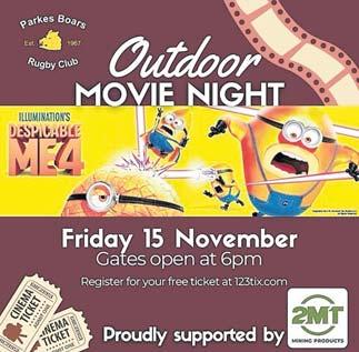 Parkes Boars will be hosting an Outdoor Movie Night at Spicer Oval with gates opening at 6pm. There will be a canteen, bar, Packed Cones and a jumping castle also on the night. Sign up for you free tickets at 123tix to watch Despicable Me 4.