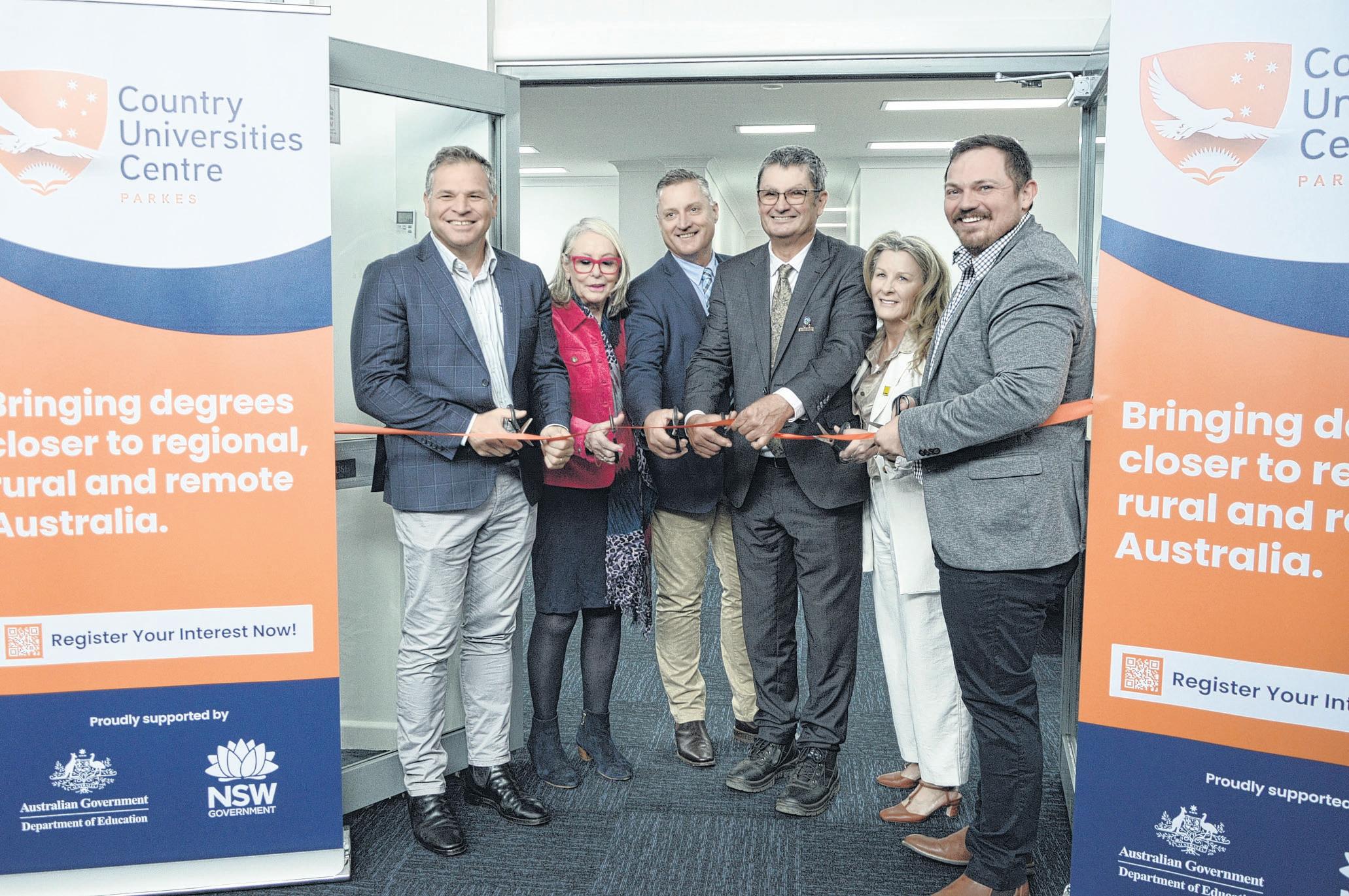 for Parkes Jamie Chaffey, State Member for Orange Phil Donato, Parkes Shire Mayor Neil Westcott, Forbes Shire Mayor Phyllis Miller and CUC Parkes board members, including chair Tracie Robertson.