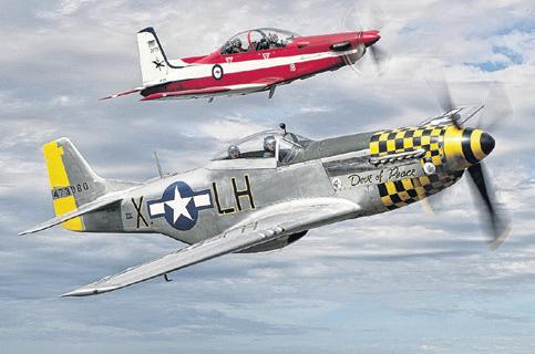 FORMATION FLYING: Doug Hamilton and Lou Harper flying a Pilatus PC9 and a P51.