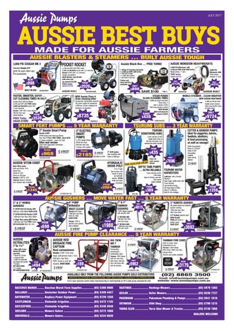 AVAILABLE ONLY FROM THE FOLLOWING AUSSIE PUMPS GOLD DISTRIBUTORS PRICES EX SYDNEY WAREHOUSE, GST INCLUDED - SUBJECT TO PRIOR SALE