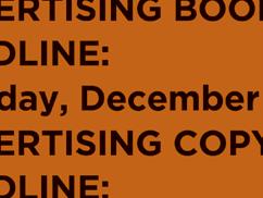 ADVERTISING BOOKING DEADLINE: Tuesday, December 13
