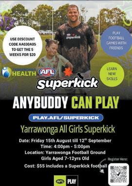 4:00pm – 5:00pm ���� Just $55 – includes your very own football! Whether it’s your first kick or you’re back for more, this program is all about fun, friends, and footy! ���� Scan the QR code to register today.