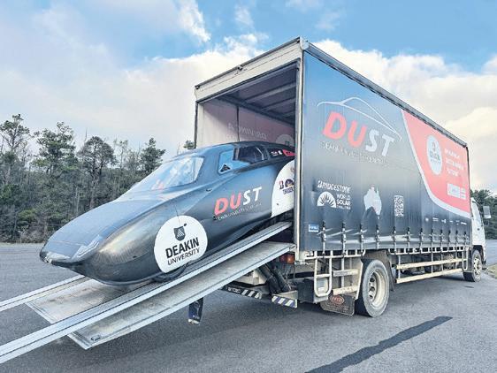 INSET: READY TO ROLL: The DUST entry to the Bridgestone World Solar Challenge is in Darwin ahead of the challenge this month.
