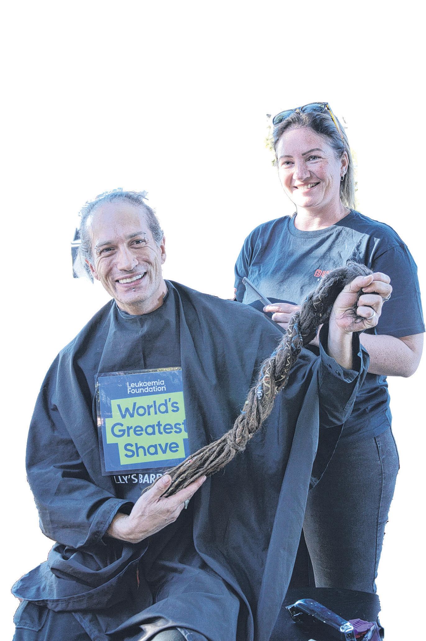Wangaratta Performing Arts and Convention Centre technical team leader Ben Fletcher was left with his trademark dreadlocks in hand following his haircut by Bully’s Barbershop’s Rachael Bigham on Wednesday, in support of the Leukemia Foundation World’s Greatest Shave. Ben eclipsed his fundraising target, so far raising over $6000 in support of patients and their families facing the devastating impact of blood cancer.