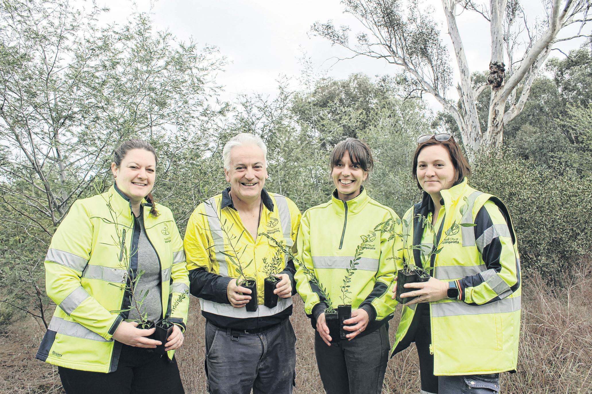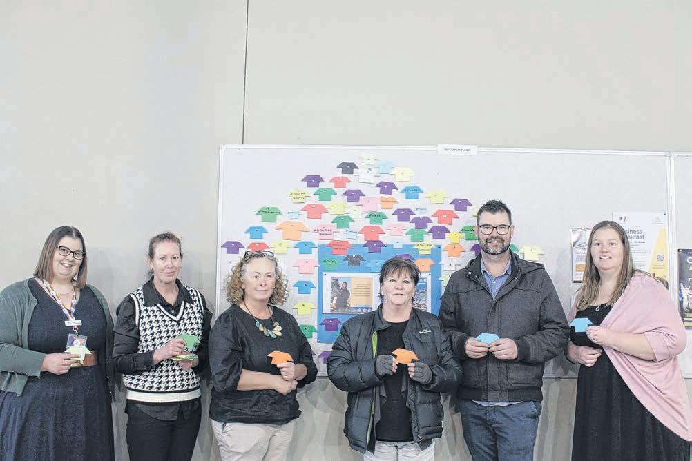 HOMELESSNESS WEEK INITIATIVE: Ovens Murray Homelessness Network have been instrumental in supporting those experiencing homelessness, taking part in the statewide ‘Houses at Parliament’ campaign by displaying origami homes across Wangaratta. Pictured are Ovens Murray Homelessness Network members (from left) Laura Shortis, Claire Anderson, Jo Hallissy, Leigh Pollard, and Megan Waters.