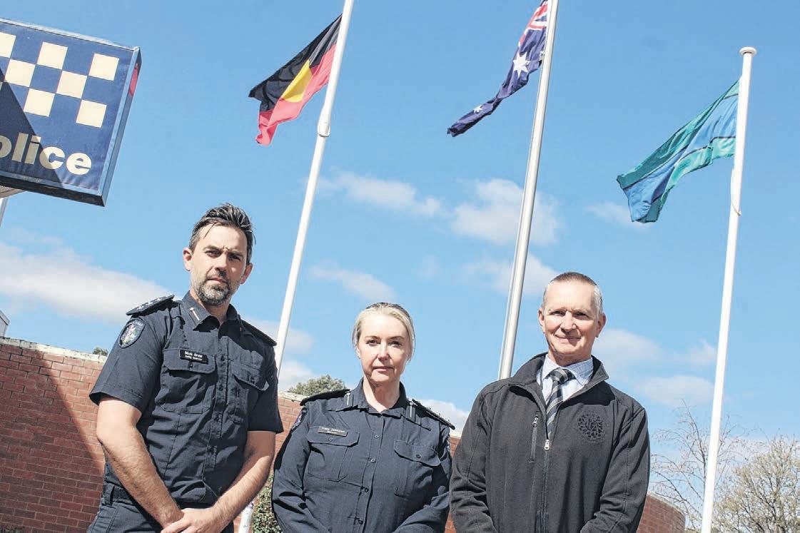STAND AS ONE: Wangaratta police members (from left) Acting Inspector Mick Drew, Inspector Tracy Johnston and Detective Senior Sergeant Damien Peppler are encouraging the community to stand with the local police force in honouring those that have fallen on duty for Victoria Police.