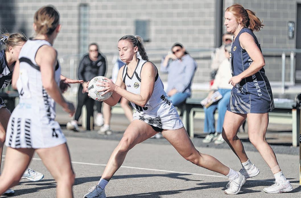 PRESSURE PLAY: Molly Shanley and the Tarrawingee defence kept Bonnie Doon’s shooters relatively quiet.