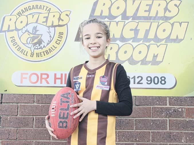 HAPPY HAWK: Whorouly Auskicker and Wangaratta Rovers U12 footballer Phoebe Cresswell is the NAB AFL Auskicker of the week. PHOTO: Shane Douthie