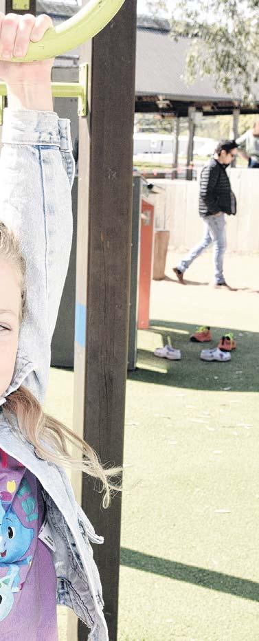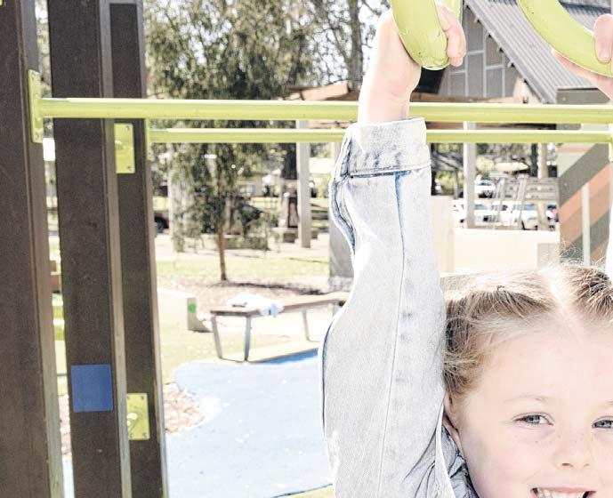 SUNNY spring weather has allowed many families to make the most of the school holidays, like Annabell Reid (pictured) who enjoyed the Apex Park playground. PHOTO: Kurt Hickling