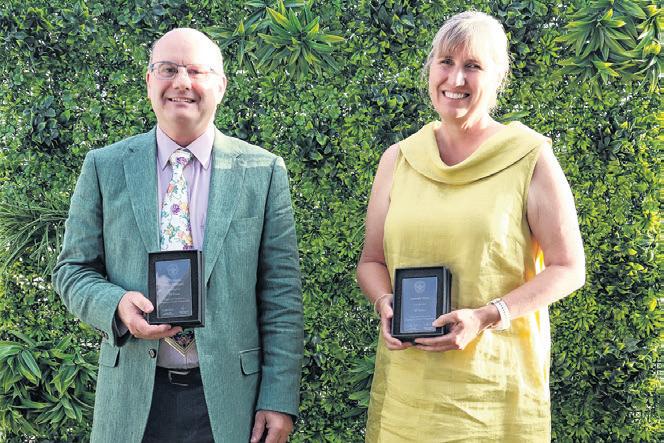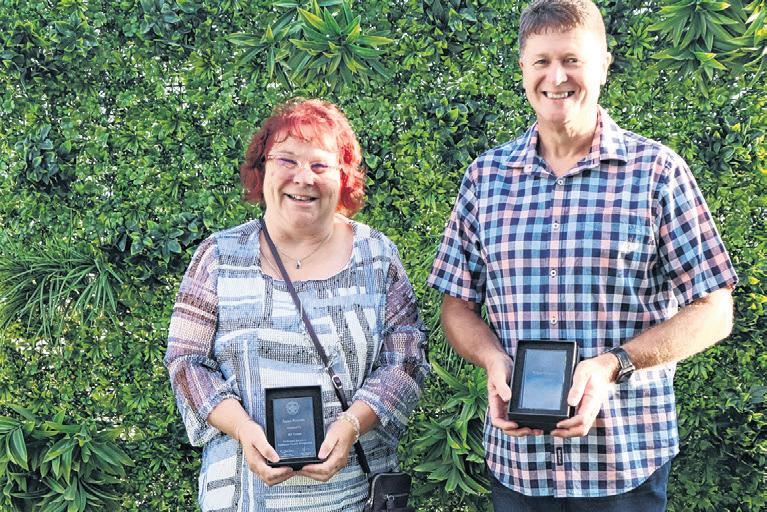 WHAT AN HONOUR: Terry Wilson (right) received his Croquet Victoria Heritage Badge from independent vote scrutineer Christine Ireland, in recognition of his tireless service to the club and the sport.