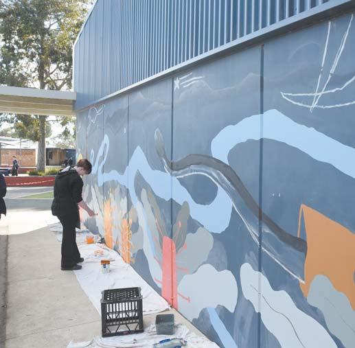 ◆ CREATIVE PROCESS: Students including Lillian Stewart spent around a week painting the mural onto the wall.