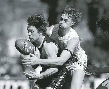 ON YOUR TAIL: Ned Rohrt puts the ball on his boot before Earl Ree-Goodings can bring him down.
