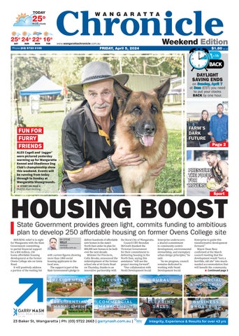 TODAY Mostly cloudy 25 25o SAT 25 25o SUN 24 24o MON 22 22o TUE 16 16o www.wangarattachronicle.com.au Weekend Edition INC. GST Phone (03) 5723 0100 FRIDAY, April 5, 2024 Sport Page 2 PRESSURE THE FOCUS FOR ROVERS FARM’S DARK FUTURE $1.80 INC BACK DAYLIGHT SAVING ENDS on Sunday, April 7 7 at 3am (EST) you need to put