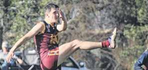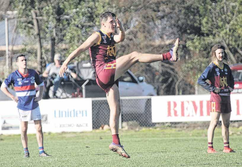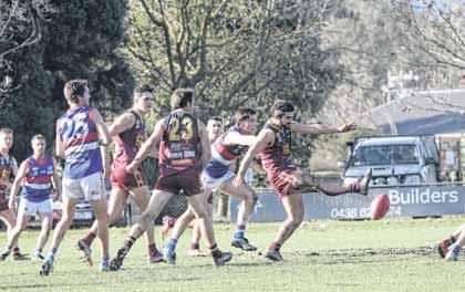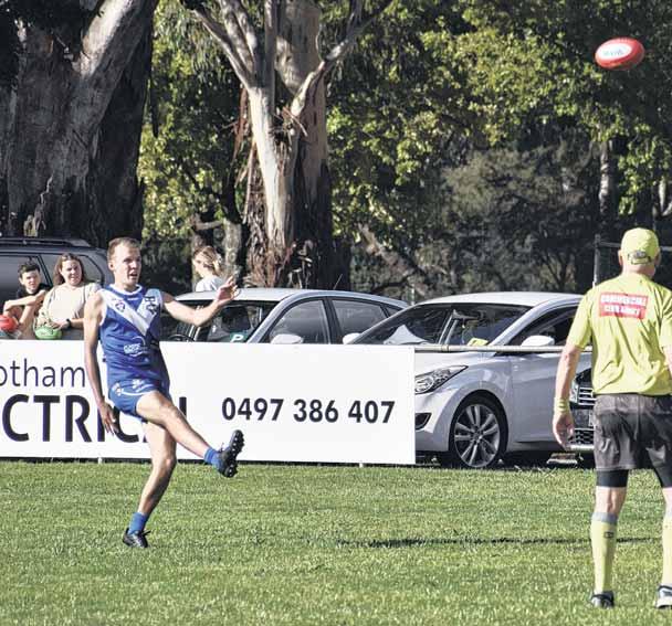 KICKING WITH PRECISION: Jack Dalbosco chimed in with two goals on Saturday to help a fast staring Bright win by 58 points over Moyhu at Pioneer Park.