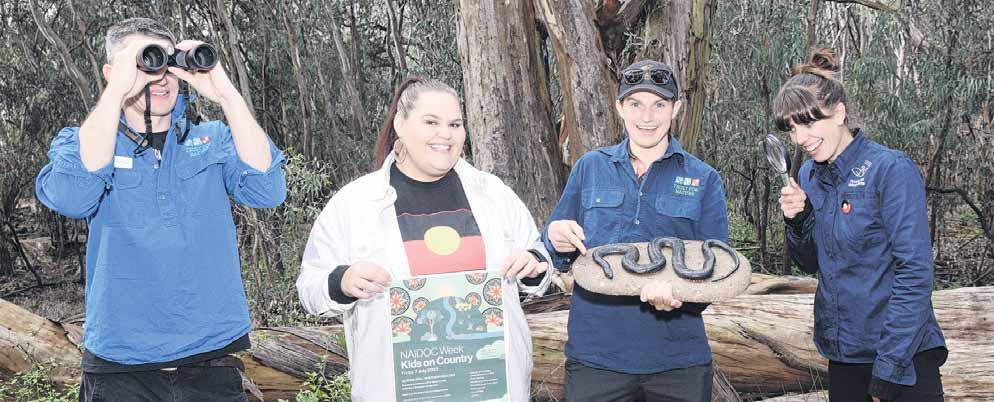 TRUST for Nature’s Will Ford and Blake Hose, Aboriginal Cultural Heritage Education’s Ji Atkinson and Rural City of Wangaratta council’s Vanessa Thompson are excited to be bringing the Kids on Country NAIDOC Week free family event, this Friday at the Northern Beaches. The day’s activities will include a wildlife presentation of native animals, activities, face painting, an Elders lounge, art, games and a barbeque lunch. It all starts at the Scout Hall from 10:30am-2pm. Full story page 5.