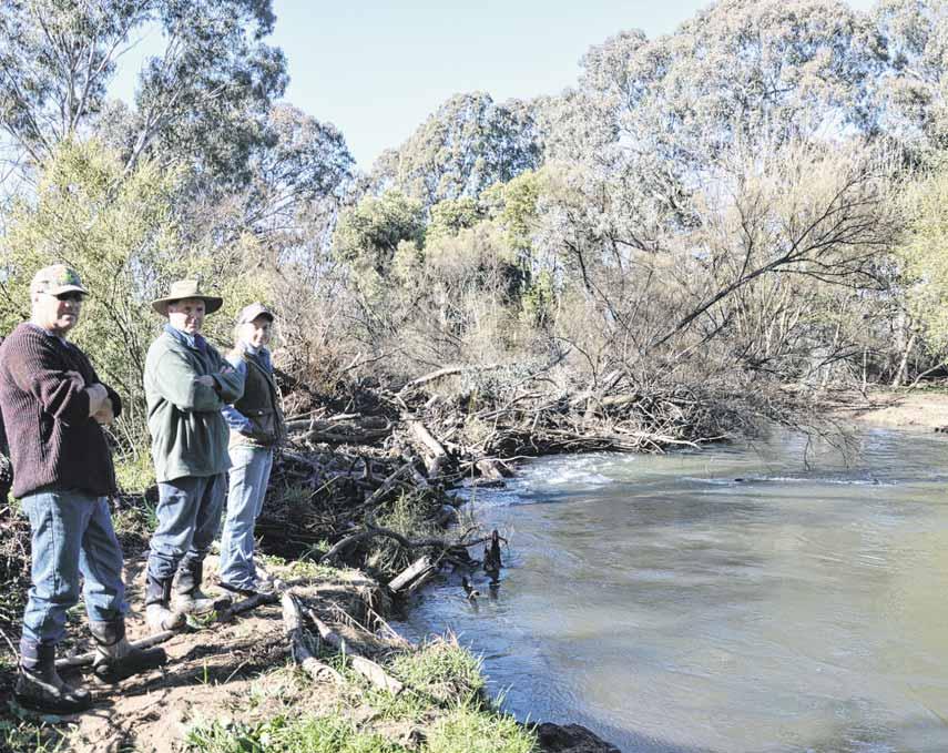 LET THE RIVER RUN: Landholders on the King River including (from left) Allan Evans, Brett Hennessy and Lidia Sartori, say a massive build-up of debris in the river is disrupting its flow and causing damage to private property and natural habitat. They are calling on the North East Catchment Management Authority to do something about it.