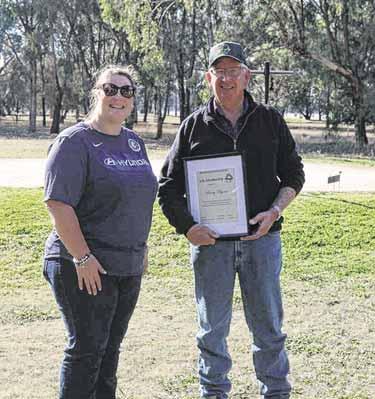 GREAT OCCASION: Boorhaman Golf Club president Melissa WilliamsSeymour presents Barry Byrne with his life membership.