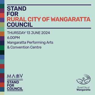 104 Murdoch Rd Wangaratta 5722 1569 enquiries@oakfm.com.au livestreaming www.oakfm.com.au YOUR LOCAL RADIO STATION Weekend Live Broadcast Sat: Myrtleford v Albury at McNamara Reserve, Myrtleford from 1pm Limited time. Conditions apply. for 12 months 6.00 % 6.00pa % pa Start saving! ✆5721 5200 www.winsec.com.au 43 Reid Street Wangaratta E: info@winsec.com.au Important Notice: Win Securities Ltd, AFSL Licence No. 240901, Australian Credit Licence No. 240901. Win Securities Ltd offers investments in Winsec Notes and is not a Bank. All investments involve risk and investors risk losing some or all of their principal investment. The risk of investment in Win Securities Ltd is set out in our current Prospectus lodged with ASIC and dated 23 November 2023 and should be read and understood before investing. Investments in Winsec Notes may only be made by completing the application form that accompanies the Prospectus. Copies of our Prospectus are available at our office situated at 43 Reid Street Wangaratta or on our website at www.winsec.com.au or by calling 5721 5200 Effective 1 March 2024. Subject to change without notice. *Conditions apply. A p art of your l o cal communi t y Since 1990 wangarattachronicle.com.au Page 2 - THE CHRONICLE, Friday, June 7, 2024