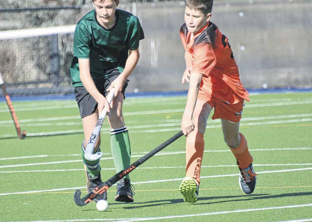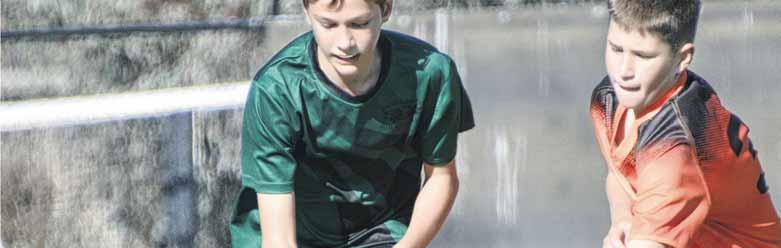 WANGARATTA Dragons’ young gun Hamish Kerr (left) battles it out with his opponent in Saturday’s game at Cathedral College.