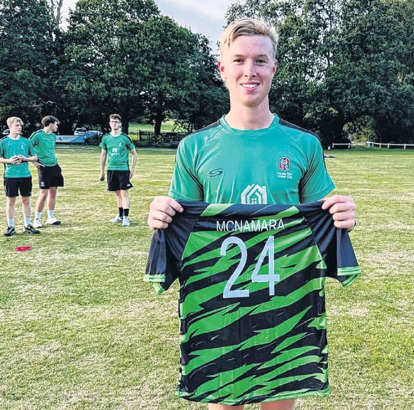 PADDY’S BACK: Rovers United Bruck’s Paddy McNamara with his Hursley Park CC kit after a summer of English cricket.