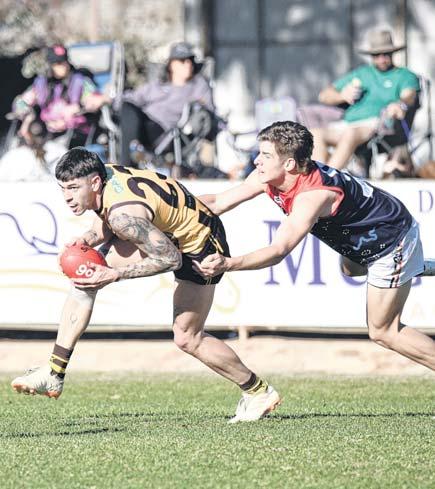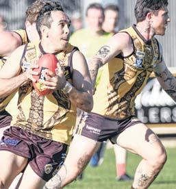 CAN’T BE HELD: Jarrod Morham was among the best on ground in the Blues’ 34-point win over Bright.