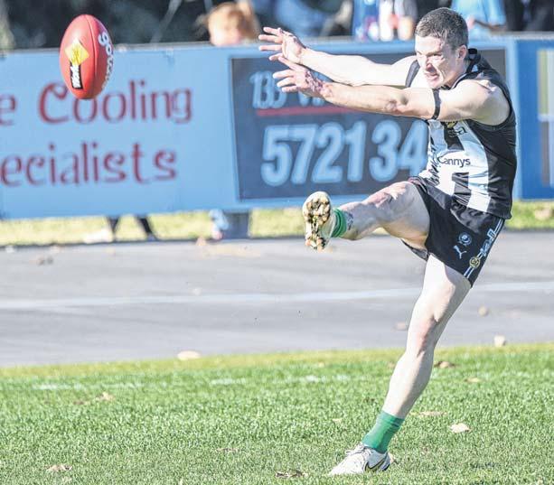 CHIP KICK: Lochie O’Brien hits a short kick.