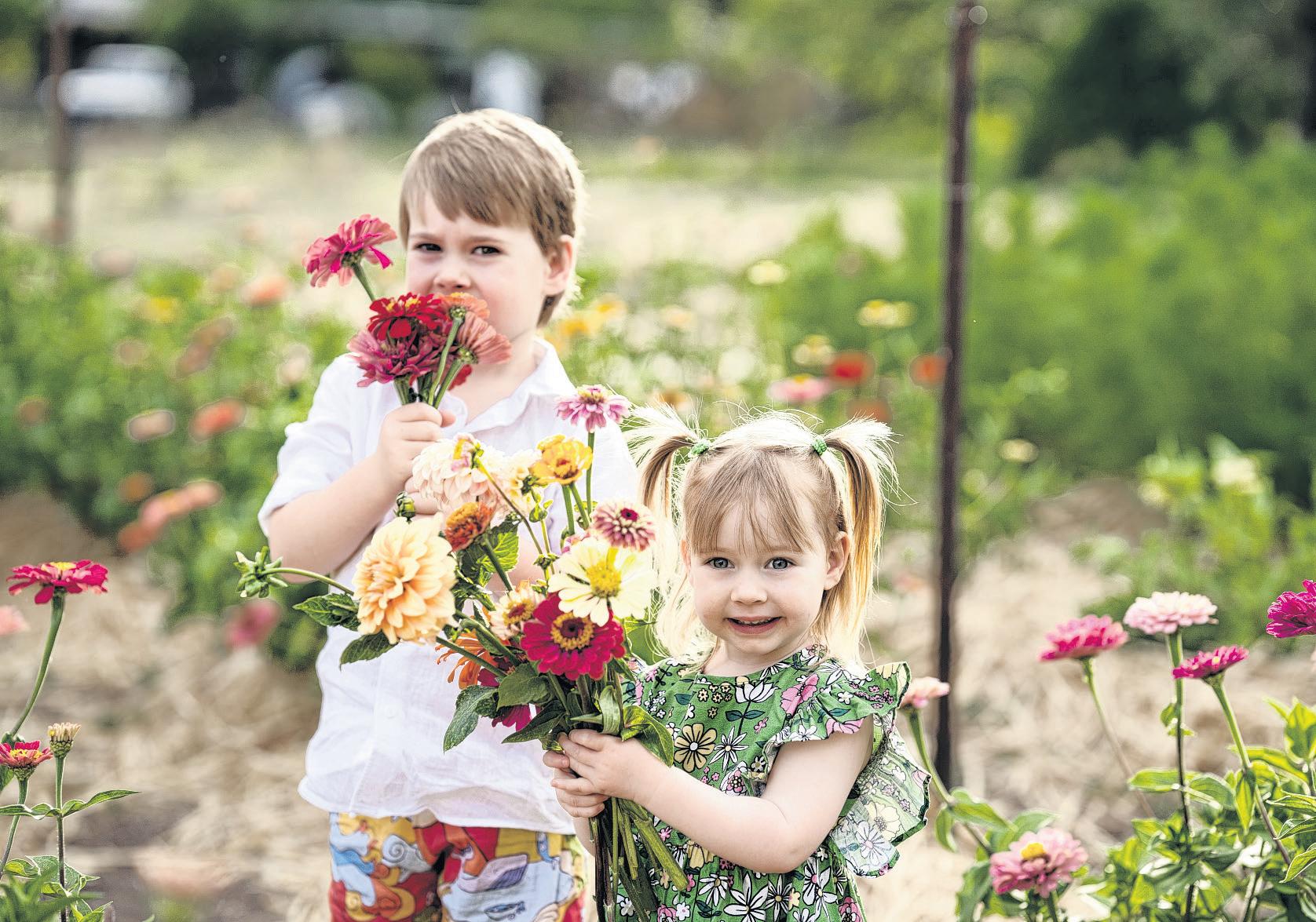 BLOOMING BOUQUET: Jack and Pippa Atkin are among the friends and families who visit Herry’s Harvest to take home a bouquet.