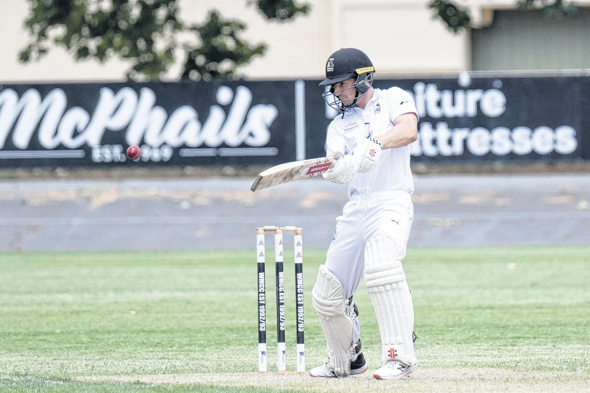 Last week’s centurion Clancy Ellett lasted only 11 deliveries before he was pinned in front LBW by James Neary, while Jackson Cull was stumped on 12.