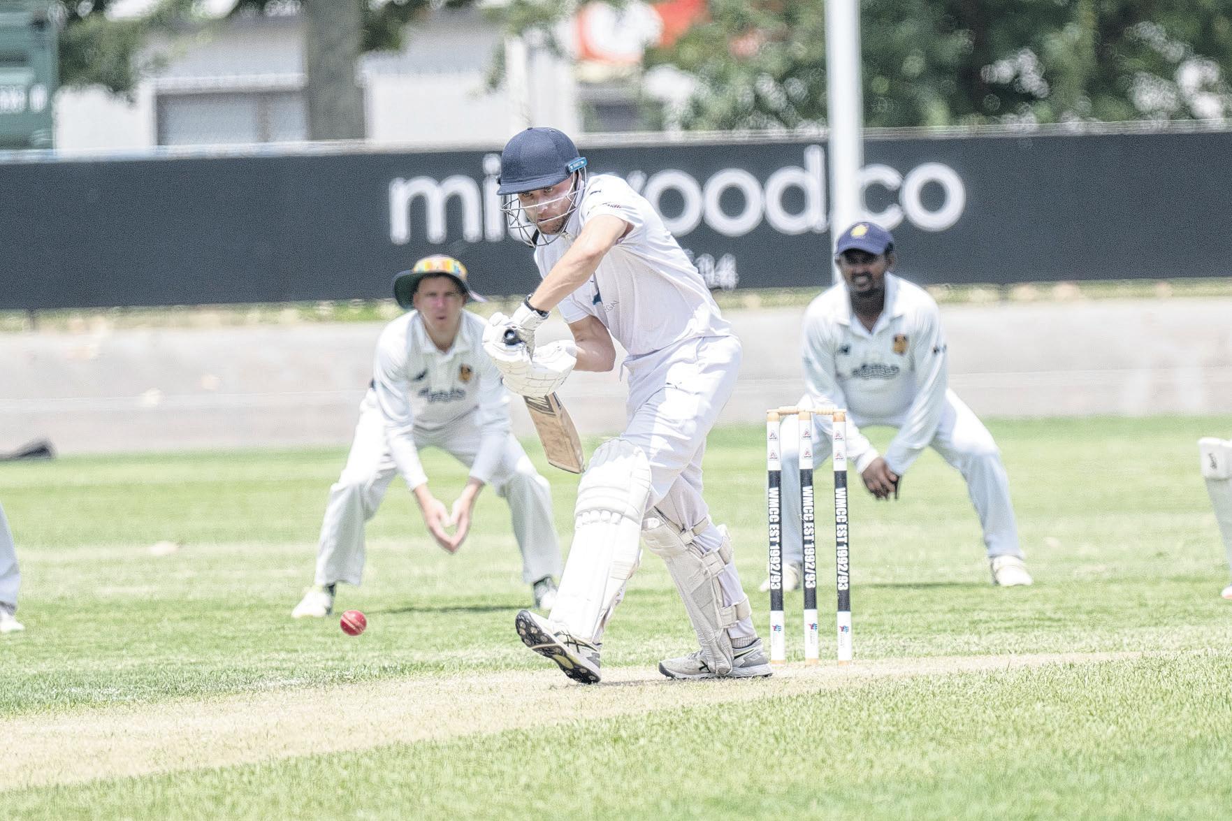 Jack Davies (four o 11 balls) and Ollie Andrew ( ve from 10) were back in the sheds soon a er, while Cooper Matheson (13 from 47), Dean Simmons (14 from 52) and Kyle Winter-Irving (20 o 50) mounted a sem-