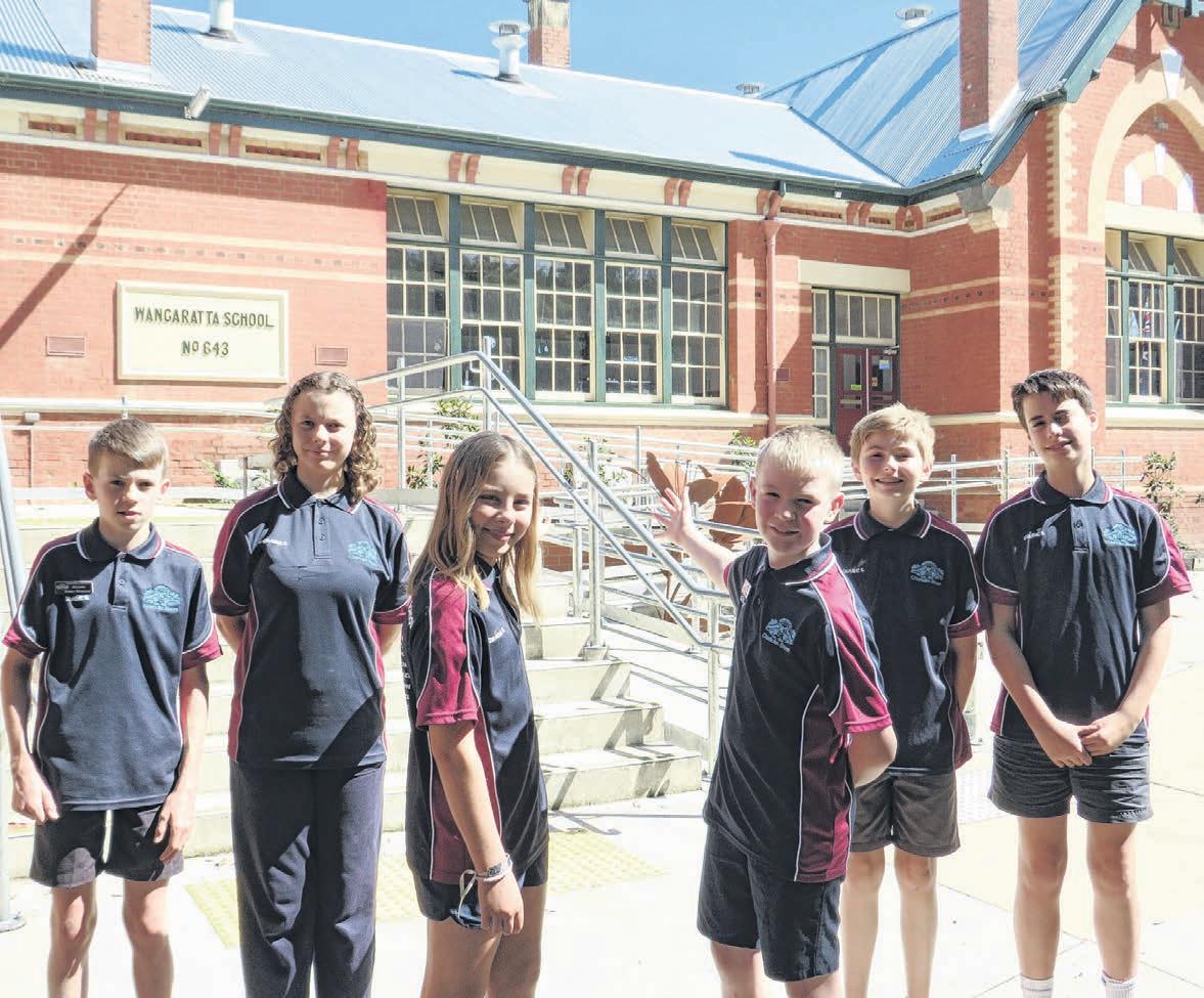 WANGARATTA Primary School captains (centre) Maya Blackall and Mark Henschke and house captains (from le ) Darcy Wheeler, Kyrah Evans, Ryan Van Der Poel and Charles Jones, all grade six students, are preparing for the end of their time at the school, but are pleased that restoration works have been completed on Wangaratta’s oldest school building, and have it looking like new.