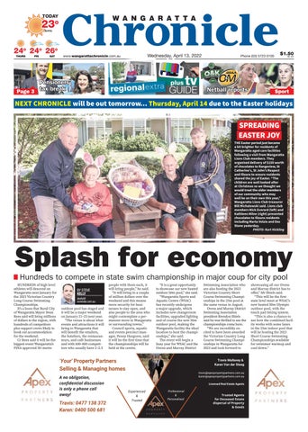 Splash for economy Hundreds ndr d to compete mp in n state swim w m championship mp n p in nm major j r coup p fforr cityy p pool HUNDREDS of high level athletes will descend on Wangaratta next January for the 2023 Victorian Country Long Course Swimming Championships. It’s a boon that Rural City of Wangaratta Mayor Dean Rees said will bring millions of dollars to the region, with hundreds of competitors plus support crews likely to book out accommodation for the weekend. Cr Rees said it will be the biggest event Wangaratta’s FINA approved 50–metre