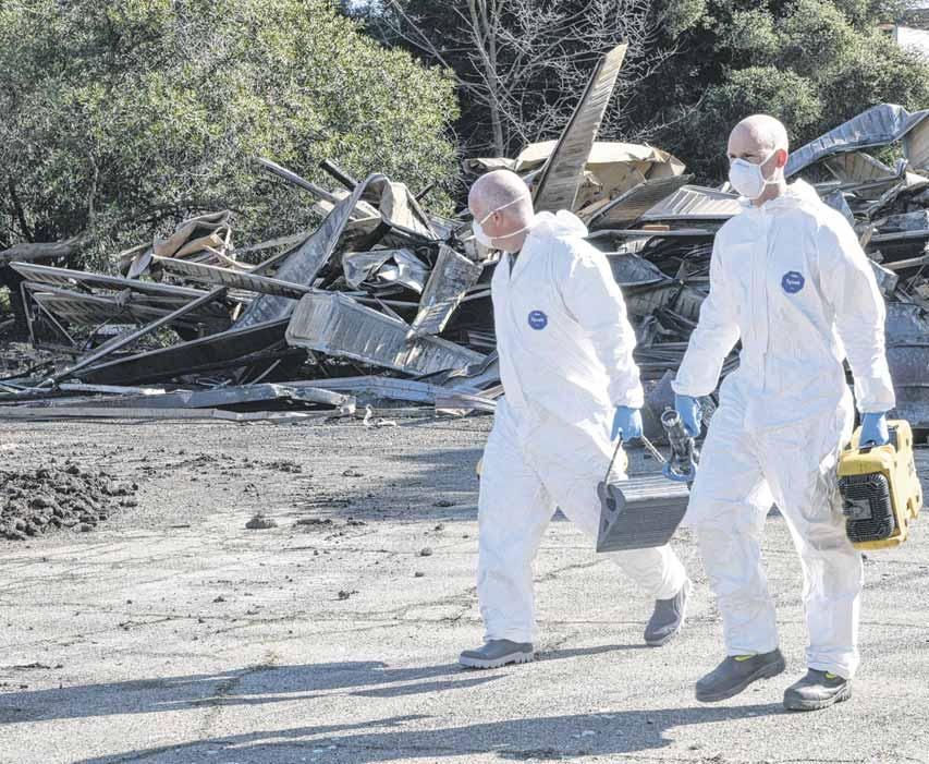 MAJOR CLEAN-UP: Firefighters donned protective gear on Monday as they assessed the aftermath of a serious blaze at Wangaratta’s former Ovens College the previous afternoon. The blaze at an asbestos-filled western building required almost 100 firefighters to bring the flames under control into Sunday night.