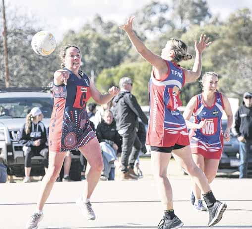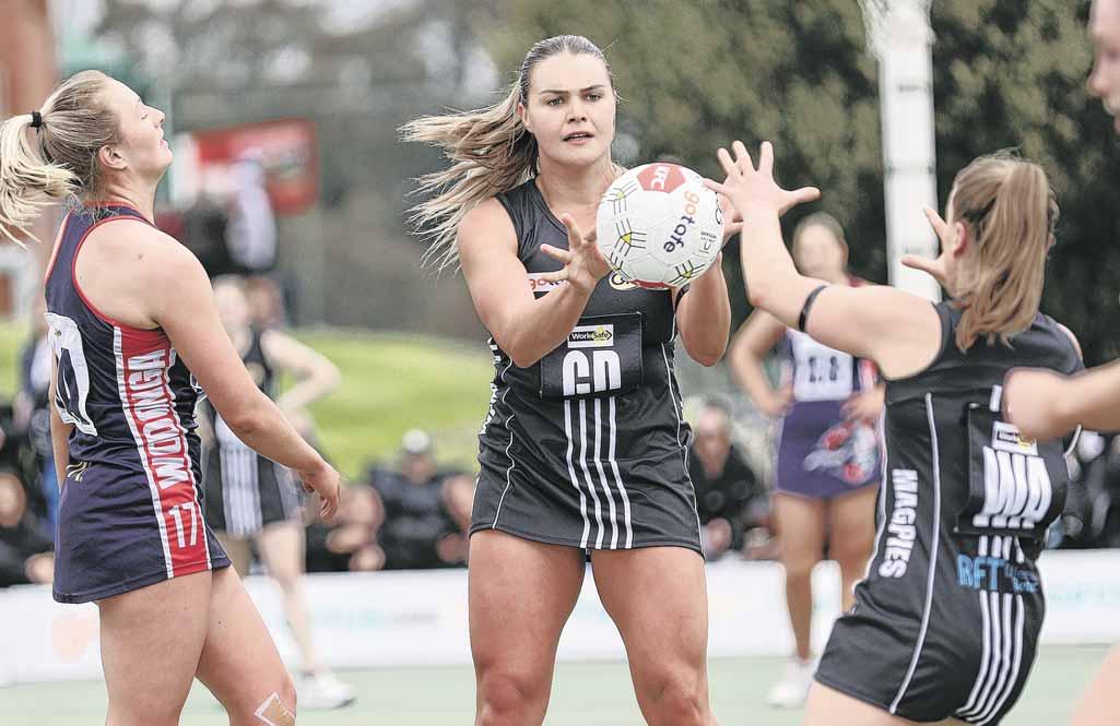 STAR SHOOTER: Kaylee Allan shot all but one of Tarrawingee’s goals, kept well supplied by Maddie Canning and Kelly Jackson. LINE BALL: Alyse Owen sends the ball down the side line in the Demons’ thrilling one goal preliminary final win. PHOTOS: Kurt Hickling