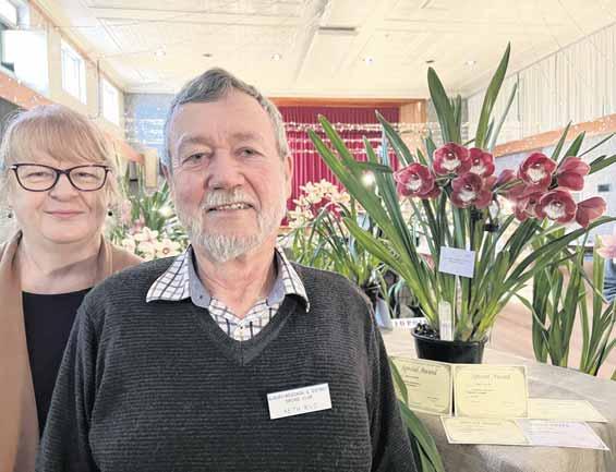 SHOW SUCCESS: Tabletop orchid growers Keith and Jenny Kilo with their exhibit judged Best Cymbidium Orchid at the annaul show. PHOTOS: Jeff Zeuschner
