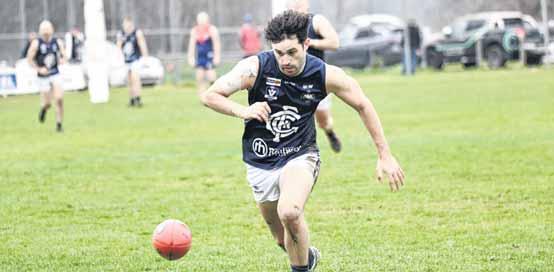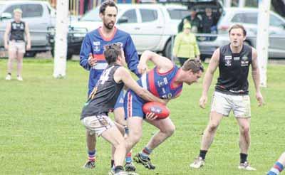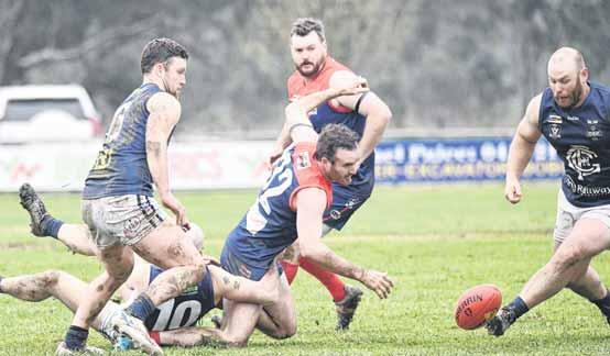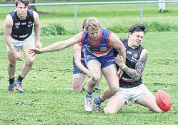 SECOND EFFORT: Ben Clarke lunges toward the footy in Milawa’s loss to Greta on the weekend. PHOTOS: Kurt Hickling