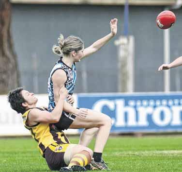 contested work. Some of the side’s best passages of play involved handballs out to players in space, followed by some clean kicking and marking, and some creative running and roving in the forward line.