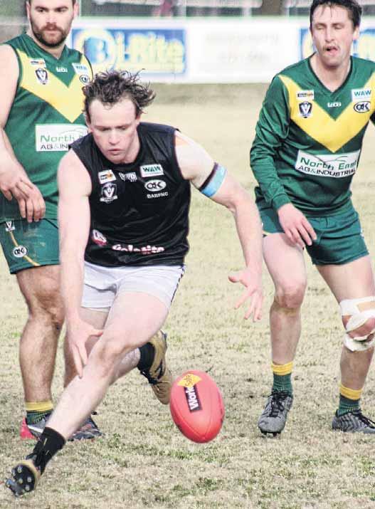 By WILLSON MACK A FOUR goal bag from Wangaratta Rovers’ debutant Alex Dowsley sent the Hawks to a 17-point win over Corowa-Rutherglen at John Foord Oval on Saturday. After leading by 22-points at three quarter time, Wangaratta Rovers weathered a late fight back from the Roos as they kicked a three goal to two final term to go down 9.11 (65) to 7.6 (48). Hawks’ midfield dynamo Brodie Filo continued a strong patch of form in his side’s victory, while Jack Gerrish and Ryan Stone had theirWangarattamoments. Rovers’ star Sam Murray was pleased with the win. “I think today (Saturday) was a big win for the club,” Murray said. “We’ve had a few bad weeks but you can see with results around the league that it’s a close season and you have to turn up on the day.“We as a footy club know what we’ve delivered over the last two weeks wasn’t good enough but to come up against a good outfit in Corowa and come away with a win we’re pretty happy withMurraythat.” admitted his team’s pressure hasn’t been where it needs to be over the past few “Pressure’sweeks.such a big thing, it doesn’t matter what level of footy you’re playing, pressure is so important,” he said.“That hasn’t been where it needs to be but I think it was back to where it needs to be which is good signs.”