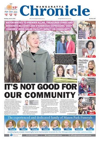THE poor treatment of community members objecting to a proposed renewable energy facility currently seeking government approval to proceed in the King Valley has been raised with a letter by Wangaratta city Mayor Irene Grant with the Victorian Premier. Cr Grant, who has served multiple terms as a councillor, administrator and mayor, also highlighted a dra VicGrid