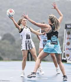 TOUGH SHOT: Kyra Clarke soars in defence as Taylah Reidy takes her shot.