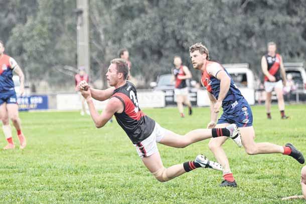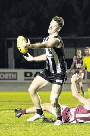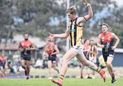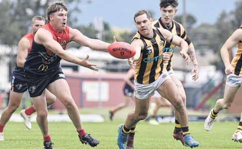 ■ From back page Former AFL player Cam Ellis-Yolmen made his Wodonga Raiders debut and caused plenty of headaches for Rovers’ midfielders throwing his 191cm, 105kg frame around.