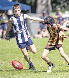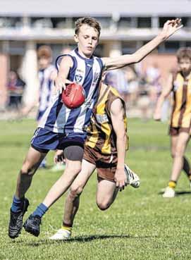 INTO ATTACK: New Wangaratta Rovers under 14 recruit Izzy Foster gets the kick away.