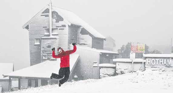 local Libby Chirnside 28, was enjoying the fresh snow at Hotham lat week. Both Hotham and Falls Creek opened terrain, with one or two lifts operating, to get the season started over the weekend.