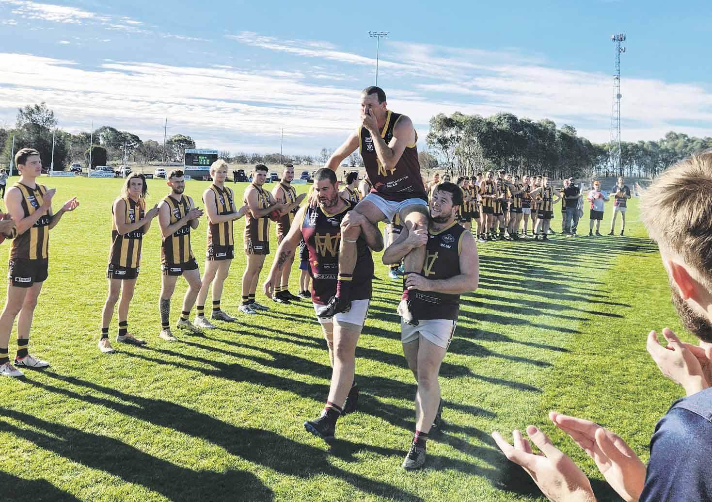 BOTH senior and reserve teams from Whorouly and North Wangaratta united to acknowledge Whorouly’s Brett Allen, who played his 500th game for the Lions in Saturday’s reserve match. Whorouly turned up for their stalwart, taking the win over the Hawks 11.5 (71) to 9.9 (63). Ovens and King match reports on page 18.